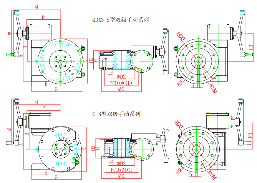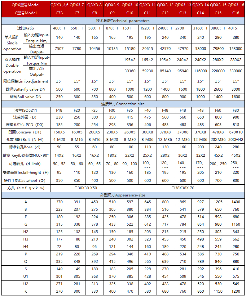 該系列是小蝸輪箱與大蝸輪箱對(duì)接組合成為二級(jí)傳動(dòng)蝸輪減速增壓機(jī)構(gòu),提高了機(jī)械總效率,輸入小力矩,開動(dòng)大閥門,使操作人員省力,每種型號(hào)提供多個(gè)傳動(dòng)比,特殊型可輸出360°無(wú)限多回轉(zhuǎn),能更好的匹配不同規(guī)格的閥門。