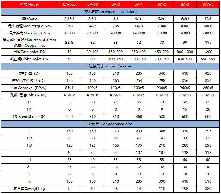 BA型多回轉(zhuǎn)手動(dòng)傘齒輪蝸輪箱
